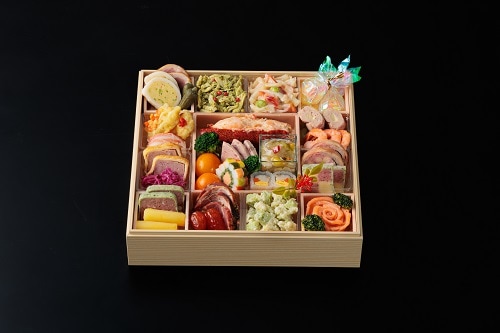迎春を祝う縁起物や豪華な素材を彩りよく盛り込んだ、